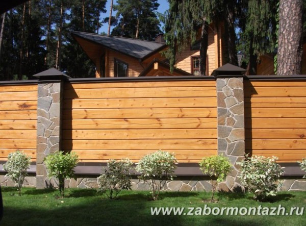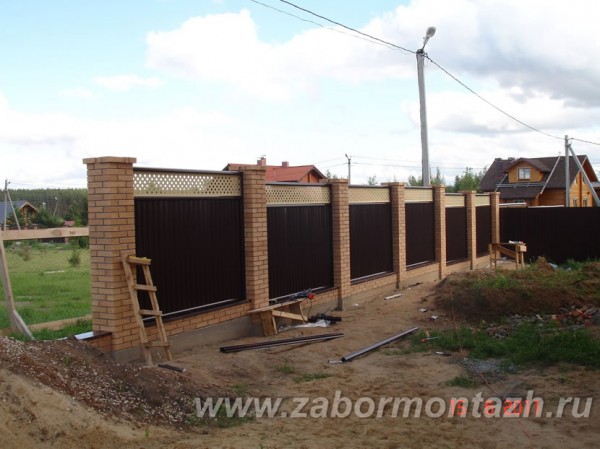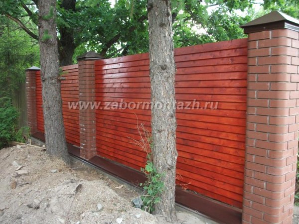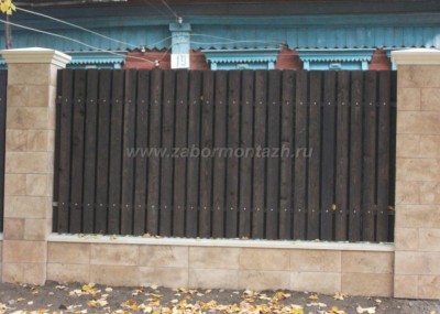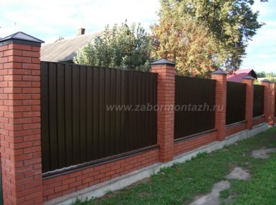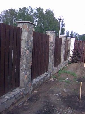 В строительстве комбинированных заборов используются разные виды материалов, чаще всего используют следующие комбинации: