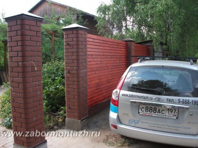 Дерево - материал довольно доступный, в то время, как кирпичные заборы обходятся дорого. Кроме того, деревянные секции прослужат дольше, находясь высоко от земли. Небольшой минус в том, что дерево все же нуждается в периодической обработке. Дизайн ограды может быть реализован по вкусу заказчика.